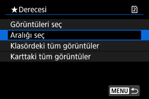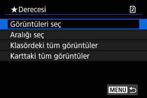 : Derecesi] altında [Klasördeki tüm görüntüler] veya [Karttaki tüm görüntüler], olarak ayarlanırsa, karttaki veya klasördeki tüm görüntüler derecelendirilir.
