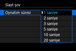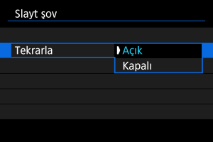 - Fotoğraflar için [Oynatım süresi] ve [Tekrarla] (tekrarlı oynatma) ayarlarını yapın.