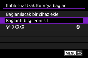 Bağlantı bilgilerini silebilirsiniz. Bu işlem, bağlı tüm kablosuz uzaktan kumandaların eşleştirmesini iptal eder.