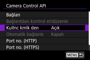 HTTP kullanırken [Kapalı]’ya ayarlayın.