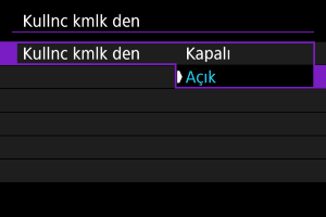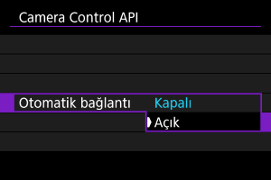 [Açık] seçildiğinde, fotoğraf makinesini kapattıktan sonra bir sonraki açılışında otomatik olarak bir bağlantı kuracaktır.