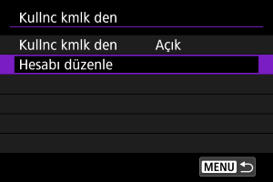 - [Açık] seçtiyseniz, [Hesabı düzenle] içinde [Kullanıcı adı] ve [Parola] seçimi yapın.