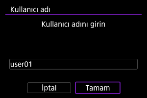 - Fotoğraf makinesi şu mesajı görüntüledikten sonra makine adını girin: [Kamerayı tanımlamak için bir rumuz kaydedin. Bu rumuz Wi-Fi ve Bluetooth bağlantıları için kullanılacaktır.].