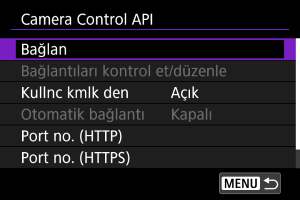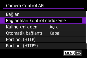 Kamera Kontrol API'sini (CCAPI)* uygulayan bir uygulamayı veya başka bir ürünü kullanmadan önce, fotoğraf makinesini kullanacağınız akıllı telefon, tablet veya bilgisayara bağlayarak CCAPI kontrolü için hazırlayın.