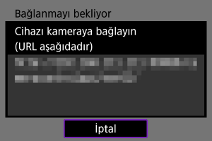 - Fotoğraf makinesinde yukarıdaki ekran göründüğünde, makine kontrolü için geliştirilen uygulamadan belirtilen URL adresine erişmek için akıllı telefonu, bilgisayarı veya başka bir cihazı kullanın.