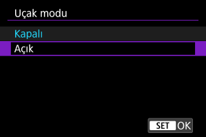 Wi-Fi ve Bluetooth işlevlerini geçici olarak devre dışı bırakabilirsiniz.