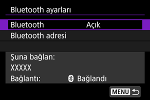 Eşleştirilen cihazın adını ve iletişim durumunu kontrol edebilirsiniz.