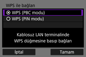 Aşağıdaki gibi iki bağlantı yöntemi kullanılabilir. PBC modunda WPS aracılığıyla daha kolay bağlantı kurabilirsiniz.