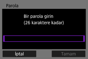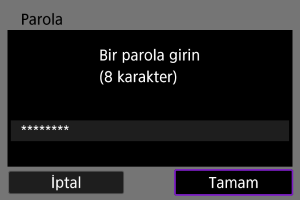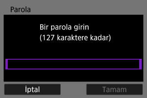 - Erişim noktası için belirlenen şifreleme anahtarını (parolayı) girin. Belirlenen şifreleme anahtarı ile ilgili ayrıntılar için erişim noktasının kullanım kılavuzuna başvurun.