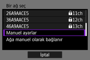 [Bir ağ seç] ekranında [Manuel ayarlar] seçimi yapın.