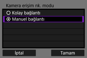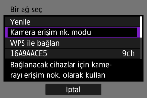 [Bir ağ seç] ekranında [Kamera erişim nk. modu] seçimi yapın.