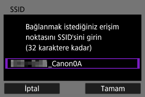 SSID’sini (veya ESS-ID’si) girerek bir erişim noktasına bağlanın.