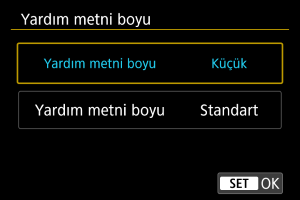1. [Ayar: Yardım metni boyu] () seçimi yapın.