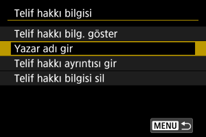 2. adımda [Telif hakkı bilgisi sil] seçimi yapıldığında, girmiş olduğunuz [Yazar] ve [Telif hakkı] bilgilerini silebilirsiniz.