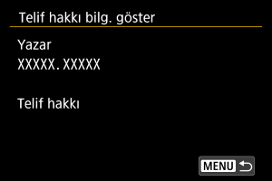 - “Yazar” veya “Telif Hakkı” girişi uzunsa, [Telif hakkı bilg. göster] seçildiğinde tamamı görüntülenmeyebilir.