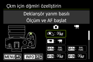 : Çkm için dğmlri özellştirin] içinde deklanşör tuşuna atanmış olan herhangi bir işlevi geçersiz kılar.