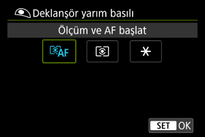 Deklanşör tuşuna tam basarak gerçekleştirilecek işlevi belirleyin.