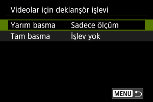 Video çekim sırasında deklanşöre yarım veya tam basarak harekete geçen işlevleri ayarlayabilirsiniz.