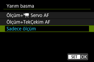 Deklanşör tuşuna yarım basarak gerçekleştirilecek işlevi belirleyin.