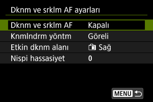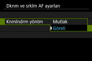 Daha hızlı AF noktası konumlandırması için pozitif uca doğru ayarlayın ve daha yavaş konumlandırma için negatif uca doğru ayarlayın.
