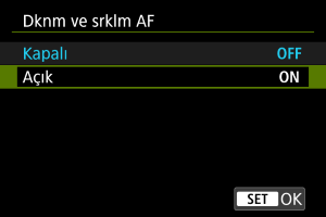 Dokunma ve sürükleme ile AF işlevini etkinleştirmek için [Açık] seçimi yapın.