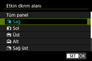 →Ana Kadran] belirlendiğinde AF noktasını yatay yönde hareket ettirmek için