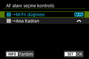 tuşuna basın ve [Kontrol halkası olarak kullanırken odak modu AF] seçeneğine bir onay işareti [