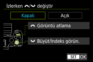 Fotoğraf makinesinin görüntüler arasında nasıl atlayacağını ayarlamak için, tek tek görüntü oynatma ekranında [/
