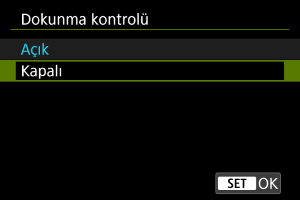 - Dokunmatik işlemleri kapatmak için [Kapalı] seçimi yapın.