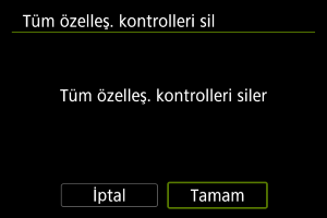 [: Tüm özelleş. kontrolleri sil] seçildiğinde tüm özelleştirilmiş ayarlar silinir.