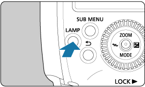 Pressing the button illuminates the modeling lamp for 5 min. To turn it off, press the button again.