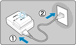 - Наданий у комплекті зарядний пристрій можна використовувати лише для заряджання акумуляторів типу LP-E6P/LP-E6NH/LP-E6N/LP-E6.