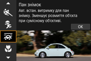 - Визначений рівень ефекту панорамування може не застосовуватися під час зйомки при яскравому освітленні (наприклад, у сонячні літні дні) або під час зйомки повільних об’єктів.