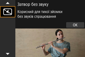 Коли потрібна тиша, можна знімати без звуків спуску затвора або інших звукових сигналів.