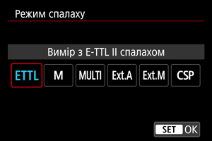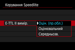 - [Вимір з E-TTL II спалахом] — це стандартний автоматичний режим для спалахів Speedlite серії EL/EX.