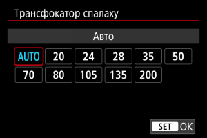Якщо головку спалаху Speedlite обладнано трансфокатором, можна регулювати кут розсіювання спалаху.