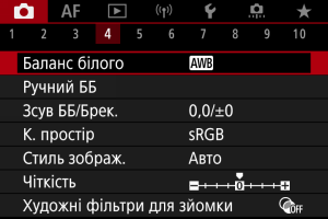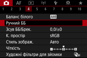 1. Виберіть [Зйомка: Баланс білого].
