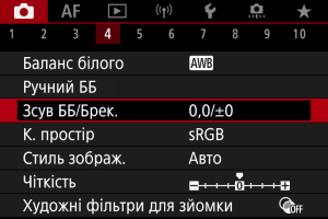 Настроювання величини брекетингу балансу білого.