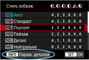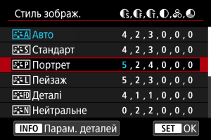 - Вибравши в кроці 3 пункт [За замовчув.], можна відновити для параметрів відповідного стилю зображення значення за замовчуванням.