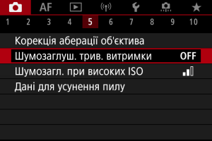 Якщо час експонування становить 1 секунду або більше, зменшення рівня шуму, характерного для зйомки з тривалою витримкою, відбувається автоматично. Це настроювання зазвичай є досить ефективним.