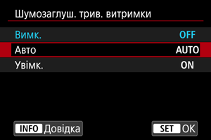 1. Виберіть [Зйомка: Шумозаглуш. трив. витримки].