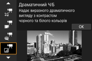 Чутливість ISO буде встановлено автоматично. Див. розділ Чутливість ISO під час запису відео.