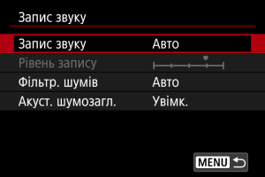 Використовуйте параметр [: Запис звуку], щоб налаштувати функції запису звуку.