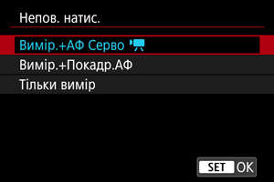 Укажіть функцію, яка застосовуватиметься натисканням кнопки затвора повністю.