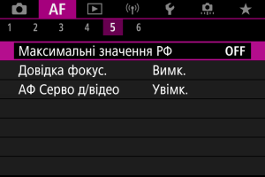 - Виділення для ручного фокусування може бути важко розгледіти, коли встановлено Canon Log. У разі необхідності встановіть для параметра [Підтр. перегляду] значення [Увімк.].