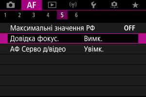 Якщо встановити для параметра [: Довідка фокус.] значення [Увімк.], відображатимуться візуальні підказки, що позначатимуть напрямок і потрібний ступінь корекції.