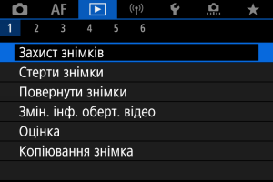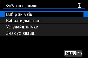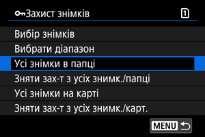 - Щоб скасувати захист, виберіть [Зняти зах-т з усіх знимк./папці] або [Зняти зах-т з усіх знимк./карт.].