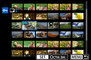 Під час перегляду зображень у режимі індексного відображення можна вибрати перше й останнє зображення, щоб захистити відразу цілу групу знімків.