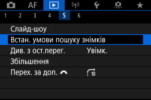 1. Виберіть пункт [Відтворення: Встан. умови пошуку знімків].
