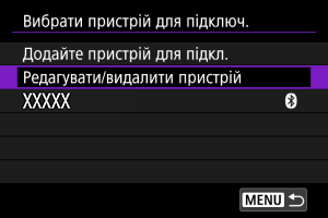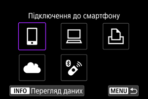 - Через Bluetooth камеру неможливо підключити до двох або більше пристроїв одночасно. Про зміну підключення до іншого смартфона через Bluetooth див. Повторне з’єднання через Wi-Fi/Bluetooth.